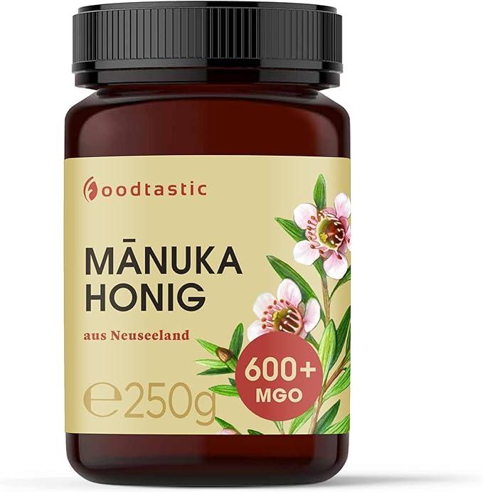 Foodtastic Manuka miód MGO 600+ 250 g, certyfikowany z Nowej Zelandii, sprawdzony laboratoryjnie