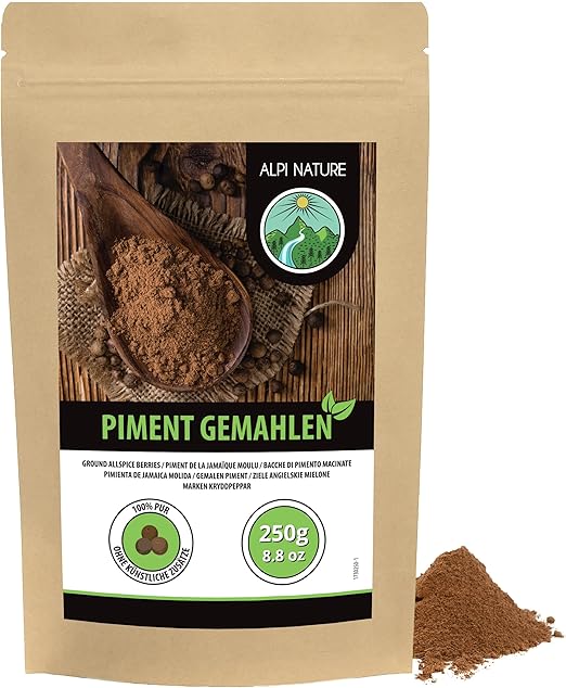Об этом продукте Душистый перец: Также известный как ямайский перец и миртовый перец, это высушенные плоды вечнозеленого тропического дерева (Pimmenta dioca). Он широко распространен в Центральной Америке. Испанские исследователи ошибочно приняли его за разновидность перца и поэтому назвали его «пименто». Высушенные ягоды обладают характерным вкусом корицы, гвоздики и мускатного ореха. Вкус всех ягод слегка пряный и насыщенный. 100% натуральный: Наш душистый перец не содержит добавленных консервантов или ароматизаторов — это 100% натуральный продукт. Качество на протяжении всей цепочки создания стоимости: Наш душистый перец тщательно собирается, бережно сушится и измельчается. Затем он упаковывается вручную. Производственный процесс подвергается постоянному контролю качества. Универсальное применение: Пименто используется в маринадах для мяса и рыбы, а также в различных заправках и соусах, например, для квашеной капусты. Добавьте одну-две чайные ложки муки для экзотического восточного вкуса. Упаковка с многоразовой застежкой: Пакет с многоразовой застежкой обеспечивает срок годности продукта и сохраняет его аромат.