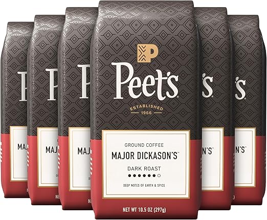 Peet’s Coffee, Dark Roast Ground Coffee — Major Dickason’s Blend 63 Ounces (Six Bags of 10.5 Ounce) Packaging May Vary