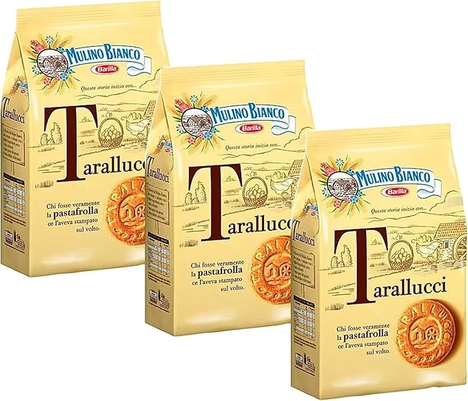 Описание продукта: Идеально подходит к утреннему молоку, кофе или чаю на завтрак. Печенье Mulino Bianco Tarallucci дарит неповторимый вкус настоящего итальянского завтрака. Печенье Tarallucci напоминает старомодное, похожее на кекс печенье, которое пекли бабушки, и приготовленное с добавлением яиц от кур-несушек. Mulino Bianco Tarallucci 350 г Упаковка из 3 штук
