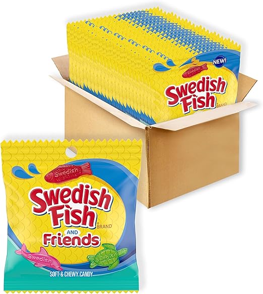 SWEDISH FISH and Friends Soft & Chewy Candy, 12-3.59 oz Bags