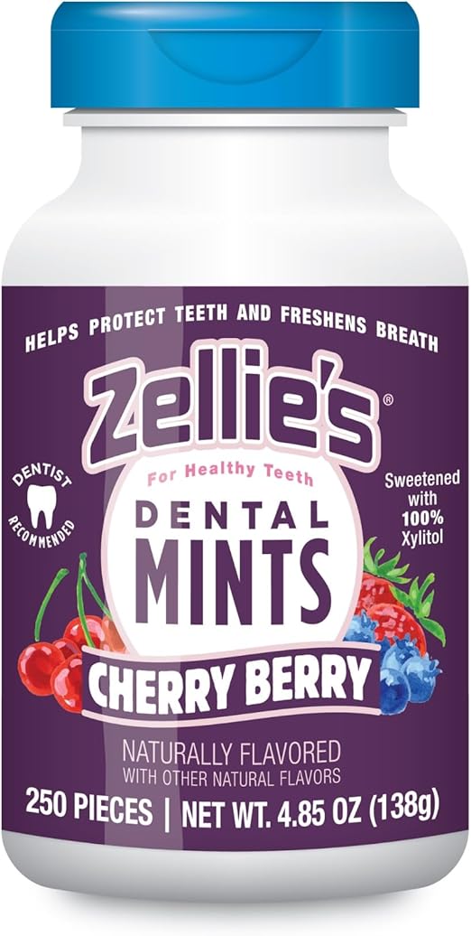 Мятные конфеты Zellie’s 100% ксилитол, без сахара, вишня и ягоды Без ГМО, низкокалорийные, без глютена, веганские и кошерные (250 штук — упаковка из 1)