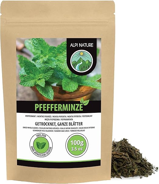Alpi Nature Herbata z Mięty Pieprzowej 100g, Całe Liście Mięty Pieprzowej, Herbata Liściasta do Naparów