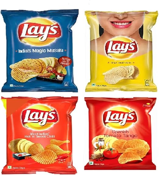 Lays Combo wielopak chipsów 52 g – magiczna masala/hiszpańskie tango pomidorowe / klasyczne solone / gorące i słodkie chilli (opakowanie 2 szt.)