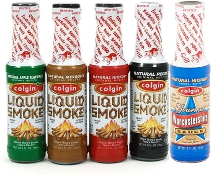 COLGIN Zestaw marynaty do grilla z płynnym dymem – pekan, hikora, mesquite, jabłko i Worcestershire