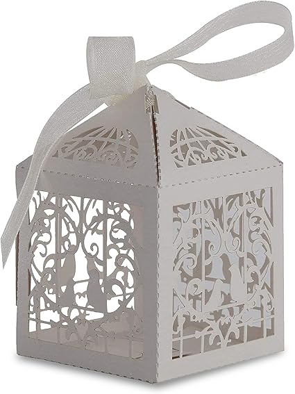 Trimming Shop 100 szt. cukierki prezent pudełko na prezenty z ulubionymi przyborami precyzyjnie wycięte słodkie ptaki miłość ślub urodziny przyjęcie baby shower wydarzenie ze wstążkami, srebrny