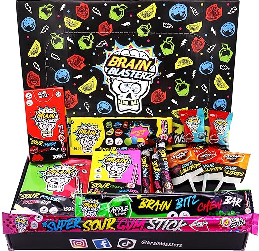 Описание товара: Набор сладостей Brain Blasterz наполнен вашими любимыми кислыми конфетами Brain Blasterz, степень кислотности которых варьируется от 1 до 4 по шкале! Доставляется в суперкрутой, обновленной подарочной коробке премиум-класса Brain Blasterz. Содержит разнообразные продукты Brain Blasterz — кислые леденцы, кислую жевательную резинку, кислый батончик и многое другое. ИДЕАЛЬНО ДЛЯ ЛЮБИТЕЛЕЙ КИСЛЫХ СЛАДОСТЕЙ — Этот супер-кислый набор сладостей станет отличным подарком на любой случай — День матери, День отца, Пасху, Хэллоуин, День святого Валентина, день рождения или Рождество. Быстрая доставка через Amazon Prime.