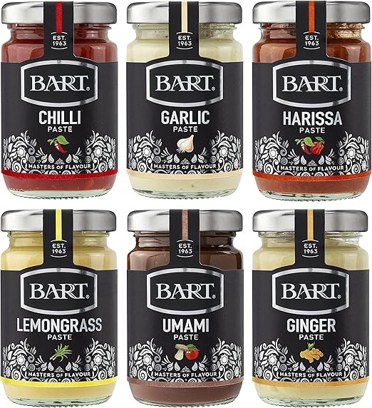 Описание продукта: Заполните свой кухонный шкаф нашей незаменимой пастой. Насладитесь острым вкусом нашей пасты чили, пикантным умами-вкусом и взрывом ароматов лемонграсса, имбиря и чеснока. Состав: паста чили, чесночная паста, паста харисса, паста лемонграсс, паста умами и имбирная паста. Упаковано в картонную коробку с логотипом Bart с шестью отверстиями для разделения ингредиентов. Упаковано в Великобритании компанией The Bart Ingredients Co. Ltd.