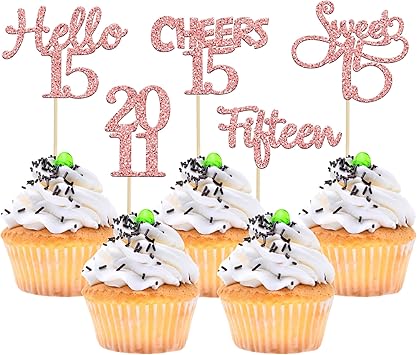 Набор украшений для кексов Gyufise, 30 штук, с блестками, для 15-летия, розовое золото, 15 лет, 15 лет с 2006 года, украшения для торта на 15-летие.