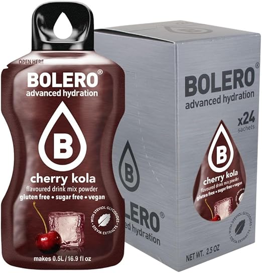Bolero Napój 24 torebki 3 g g g Sticks Owoce Przygotowane Rozpuszczalny Proszek Do Świeży Napój Wody Produktu, 72 gramów słodzony stewią (Cherry Kola)
