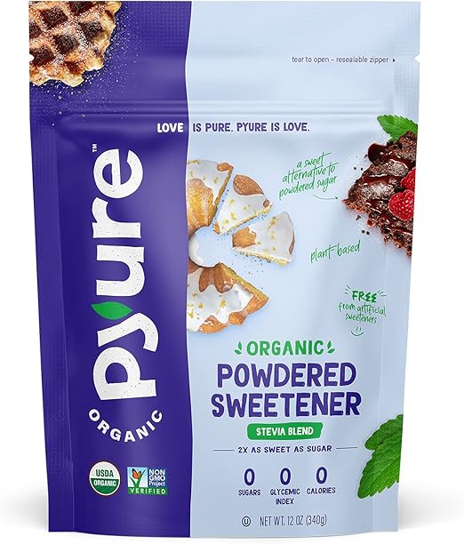 Pyure Organic Powdered Confectioners Stevia Sweetener Blend, 2:1 Sugar Substitute, 12 Ounce