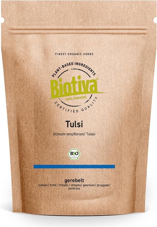 Размеры упаковки: 28,2 x 17,8 x 7 см; Вес: 100 г. Единицы измерения: 100,0 грамм. Инструкции по хранению: Хранить в сухом, защищенном от света месте. Свяжитесь с производителем: GOOD ORGANICS GMBH, Mitterstrasswegg 23, 82064, STRASS LACH, DE. Бренд: Biotiva. Формат: Листья. Особенности: Без добавления сахара, без глютена, органический, без лактозы, без сои, веганский. Сертификаты: Сертифицированное органическое выращивание. Штаммы: 100% тулси (Ocimum Tenuiflorum), выращенный в биологически контролируемой среде (DE-Öko-005). Производитель: Good Organics GMBH. Вес: 100 грамм.