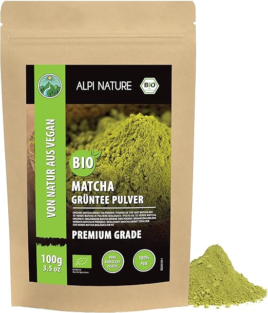 Alpi Nature Ekologiczna Matcha w Proszku 100g, Zielona Herbata Matcha Klasy Premium, Naturalnie Zawierająca Kofeinę