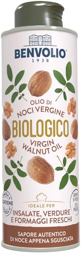 Об этом продукте ОРГАНИЧЕСКОЕ И ХОЛОДНОГО ОТЖИМА: Настоящее оливковое масло первого холодного отжима из орехов, выращенных исключительно на сертифицированных органических фермах. Механический холодный отжим (ниже 27°C) без использования растворителей сохраняет питательную ценность, свежий аромат и натуральный вкус. ✨ НАТУРАЛЬНЫЙ ИСТОЧНИК ОМЕГА-3: Это пищевое масло из грецкого ореха — ценный помощник для вашего здоровья. Оно богато незаменимыми жирными кислотами (Омега-3 и Омега-6) и антиоксидантами, что делает его отличной частью разнообразного и сбалансированного питания. ВОСХИТИТЕЛЬНЫЙ ВКУС И УНИВЕРСАЛЬНОСТЬ: Обладает мягким ароматом с едва уловимой ореховой ноткой, которая не перебивает вкус блюд. Идеально подходит для употребления в сыром виде: в салатах, овощах на пару, карпаччо, свежих сырах, крупах, а также в полезной выпечке и десертах. ИТАЛЬЯНСКИЕ ТРАДИЦИИ BENVOLIO: С 1938 года бренд Benvolio является синонимом качества и прозрачности. Мы контролируем всю цепочку поставок, чтобы предлагать чистое масло, гарантируя отслеживаемость и бережное отношение к окружающей среде в каждой бутылке. ️ ГАРАНТИРОВАННОЕ КАЧЕСТВО И СВЕЖЕСТЬ: Упаковано в темную стеклянную бутылку, которая защищает масло от света и окисления, сохраняя его свежесть дольше. Упаковка изготовлена ​​из перерабатываемых материалов. 100% растительная основа, подходит для веганов и вегетарианцев.