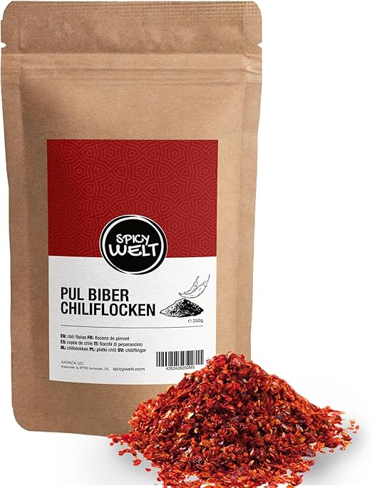 Spicy Welt Pul Biber (250g) – Płatki Chili w Stylu Tureckim do Domowego Kebaba, Pizzy, Twarożku, Jajecznicy, Hummusu, Sałatek i Zapiekanek 100% Naturalna, Bez Soli i Oleju