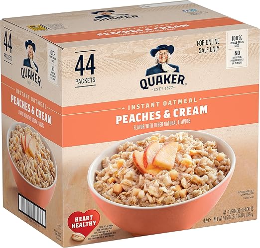 Quaker Instant Oatmeal, Peaches & Cream, 1.05oz, 44 Counts (Pack of 1)
