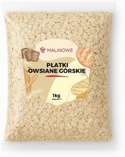 Описание продукта: Универсальное кулинарное применение: Овсяные хлопья — универсальный ингредиент, который можно использовать в самых разных блюдах, таких как овсянка, хлеб, гранола, печенье, а также в качестве ингредиента для запеканок или котлет. Питательный и сытный завтрак: Овсяные хлопья — это питательный и сытный завтрак, который даёт энергию на несколько часов. Попробуйте овсяные хлопья Malinowe, которые идеально подходят для первого завтрака. Гибкий способ употребления: Их можно есть горячими или холодными, в зависимости от ваших вкусовых предпочтений. Подходит для различных диет: Благодаря своим питательным свойствам овсяные хлопья часто рекомендуются в здоровом питании, вегетарианской и веганской диетах. Быстрое и простое приготовление: Приготовление овсяных хлопьев быстрое и простое, что делает их удобным и питательным завтраком или перекусом. Состав упаковки: Вес нетто продукта составляет 1 кг, что обеспечивает длительное использование. Натуральные горные хлопья: Изготовлены из высококачественных овсяных зерен, спрессованных в более крупные и толстые хлопья, которые сохраняют свой естественный вкус и аромат. Показать больше