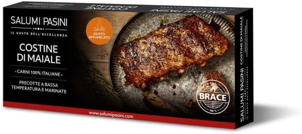 Описание продукта: ✔️【Только 100% итальянское мясо】 — Мы отбираем лучшие 100% итальянские свиные ребрышки. ✔️【Приготовление на пару】 — Ребрышки приправляются и готовятся в паровых печах более 16 часов. ✔️【Удобно и быстро】 — Запеченные, обжаренные на сковороде, приготовленные на гриле или в микроволновой печи, эти ребрышки будут готовы через 10-15 минут. ✔️【Подходит для всех】 — Без глютена, лактозы и ГМО. ✔️【Вкус барбекю】 — Эти ребрышки, приправленные травами и специями, обладают дымным ароматом, который порадует любителей насыщенных вкусов.