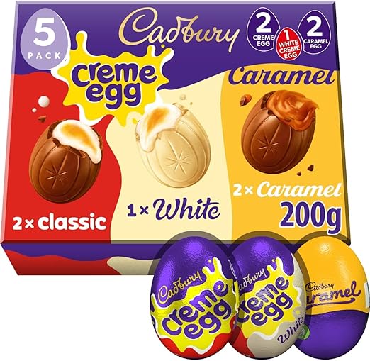 Описание товара УПАКОВКА: Порадуйте своих гурманов этим восхитительным пасхальным набором, идеально подходящим для того, чтобы поделиться им с друзьями или подарить в праздничный период. Разнообразие: Содержит смесь из 2 яиц Cadbury Creme Egg, 1 яйца из белого шоколада и 2 яиц из карамели, чтобы удовлетворить любого сладкоежку. СЕМЕЙНЫЕ ЛЮБИМЦЫ: Разнообразная коллекция самых любимых лакомств Cadbury, которая сделает вашу охоту за пасхальными яйцами особенной в этом году. ПОЛНО ВЕСЕЛЬЯ: Побалуйте себя этим разнообразием сладостей, чтобы получить восхитительно веселое удовольствие, полное сливочной нежности и насыщенного вкуса, в кругу семьи или друзей. НЕВЕРОЯТНО ВКУСНО: Побалуйте себя этими восхитительными шоколадными конфетами от проверенного бренда Cadbury — незаменимое дополнение к любому праздничному столу!