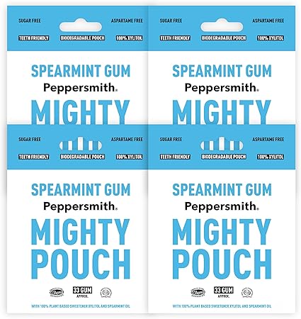 Peppersmith — Британская мятная жевательная резинка — 100% растительный ксилитол — Освежитель дыхания — Жевательная резинка без сахара — Польза для здоровья полости рта — Мощная упаковка — Набор из 4 штук