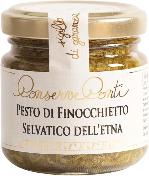 Описание продукта: Настоящий песто: приготовлен из дикого фенхеля из района Этны, обладающего уникальным и насыщенным вкусом. Кустарное производство: профессионально обработан и законсервирован в оливковом масле первого холодного отжима. Универсальность: идеально подходит для приправы первых блюд или в качестве гарнира к рыбным блюдам. Качественные ингредиенты: только дикий фенхель и оливковое масло высочайшего качества. Традиционный рецепт: изготовлено в Conserve Conti по традиционным методам.