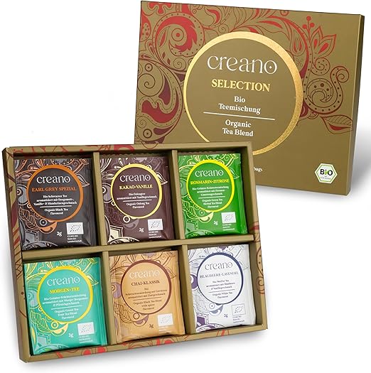 Описание товара: Подарочный набор органического чая Creano — это уникальная смесь различных сортов органического чая: розмарин-лимон, утренний чай, классический чай масала, черника-лаванда, какао-ваниль и особый Эрл Грей. Вас ждет разнообразие вкусов — шесть совершенно разных пакетиков зеленого, черного, белого и улунского чая, смешанных с травами и специями, а некоторые — с фруктовыми нотками. Эти уникальные, сертифицированные органические чайные смеси восхитительны как в горячем, так и в холодном виде. Органические чайные смеси из сертифицированных органических фермерских хозяйств содержат кофеин. Для оптимального вкуса соблюдайте различное время заваривания для каждой смеси и рекомендуемую температуру воды. Температура и время заваривания могут варьироваться — пожалуйста, обратитесь к бумажной этикетке на чайном пакетике! Идеальный подарок на день рождения, Рождество, корпоративное мероприятие, годовщину, Пасху и т.д., как для женщин, так и для мужчин. Сделано в Германии.