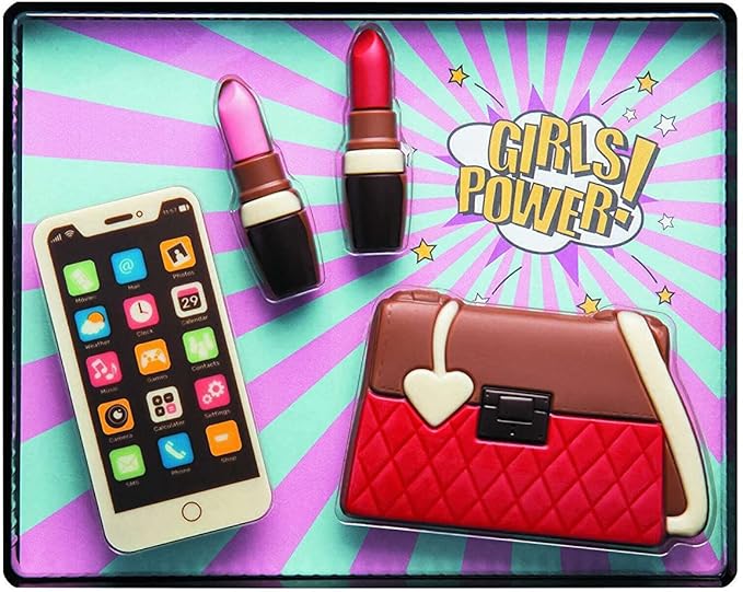 Подарочный набор шоколада Confiserie Weibler Girl Power – включает шоколадный телефон, сумочку и помаду.