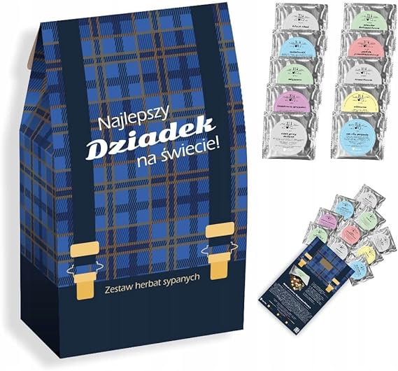 PREZENT UPOMINEK PODARUNEK NA DZIEŃ DZIADKA URODZINY 10 SMAKÓW HERBAT SYPANYCH PREMIUM GIFT BOX KOSZ PUDEŁKO ZESTAW PREZENTOWY UPOMINKOWY