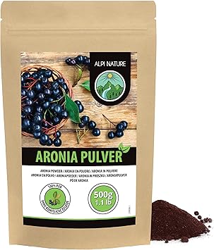 Alpi Nature Proszek z Aronii 500g, Suszone i Mielone Owoce Aronii, Proszek z Czarnej Aronii