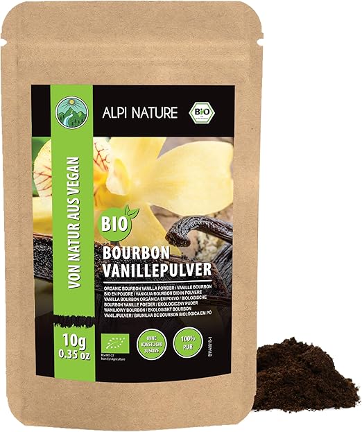 Alpi Nature Ekologiczny Proszek z Wanilii Bourbon 10g, Proszek z Lasek Wanilii z Madagaskaru Klasy A