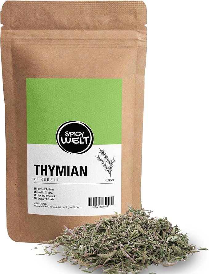 Об этом продукте 【АРОМАТ СОЛНЦА И ПРОВАНС ❤️】: Тимьян — это трава, которая вызывает в памяти аромат лета и южной Европы. Его интенсивный, слегка цитрусовый и землистый аромат мгновенно переносит вас в солнечную Италию или французскую сельскую местность. Это незаменимый ингредиент, если вы хотите придать своим блюдам средиземноморский колорит. 【ДРУГ СУПОВ ИЗ БОБОВЫХ 】: В польской кухне тимьян является основным ингредиентом в гороховом, фасолевом и чечевичном супах. Почему? Потому что он не только обладает прекрасным вкусом, но, прежде всего, способствует пищеварению после употребления этих более тяжелых блюд, предотвращая вздутие живота. Это вкус и облегчение в одном флаконе. 【ДЛЯ ЖАРЕНОЙ КУРИЦЫ 】: Курица и тимьян — идеальное сочетание. Натрите мясо нашей сушеной травой, солью и чесноком перед запеканием. Жар высвобождает масла тимьяна, которые проникают в кожуру, делая ее хрустящей и невероятно ароматной. 【ИДЕАЛЬНЫЙ ЗАПЕЧЕННЫЙ КАРТОФЕЛЬ 】: Обычный запеченный картофель станет хитом ужина, если посыпать его тимьяном. Эта трава «сочетается» с крахмалом и оливковым маслом. Добавьте щепотку розмарина, и вы получите гарнир, который исчезнет с тарелок быстрее, чем основное блюдо. 【НАШЕ ОБЕЩАНИЕ 】: Мы предлагаем сушеный тимьян высочайшего качества. Наша трава имеет серо-зеленый цвет и не содержит толстых, одревеснелых стеблей, которые портят удовольствие от еды. Это просто нежные листья, полные природной силы. 【ПИЦЦА И ТОМАТНЫЙ СОУС 】: Орегано — это не все. Щепотка тимьяна, добавленная в томатный соус для пиццы или спагетти болоньезе, придаст глубину и более изысканный вкус. Это секретный ингредиент многих итальянских «мамочек». 【НАСТОЙ ДЛЯ ГОРЛА 】: Тимьян веками известен в народной медицине как средство для поддержки дыхательной системы. Настой тимьяна с медом — это домашнее средство от хрипоты и першения в горле осенью. Он обладает успокаивающими и антисептическими свойствами. 【МАРИНАДЫ И ОЛИВКОВОЕ МАСЛО 】: Хотите приготовить собственное ароматизированное оливковое масло? Тимьян отлично для этого подходит. Добавьте его в бутылку с оливковым маслом и чесноком. Эта смесь идеально подходит для заправки салатов, сухариков или для обмакивания свежего хлеба. 【ДЛЯ РЫБЫ И МОРЕПРОДУКТОВ 】: Нежный травяной аромат тимьяна не заглушает вкус рыбы. Он прекрасно сочетается с форелью, треской или лососем (особенно с лимоном), добавляя свежести. 【СИЛЬНЕЕ СВЕЖЕГО ✨】: Помните, что сушеный тимьян более концентрирован, чем свежий. Его вкус сильнее, поэтому вам нужно использовать его в меньшем количестве для достижения желаемого эффекта. Это очень эффективная специя, которая долго сохраняет свои ароматы.