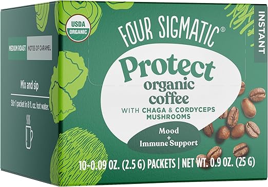 Four Sigmatic Organic Instant Coffee Powder With Cordyceps, Chaga and Eleuthero Mushroom Coffee Instant Mix 10 Packets