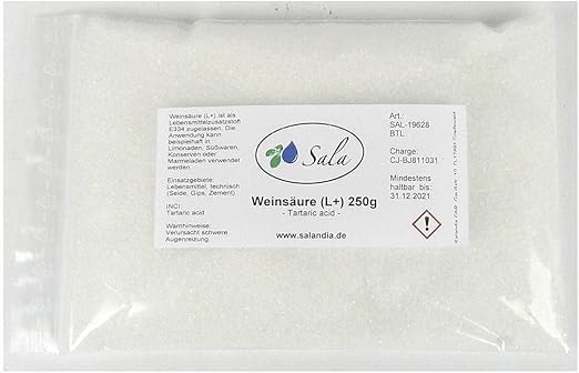 Sala Винная кислота Grieß E 334, пищевая, 250 г, пакет.