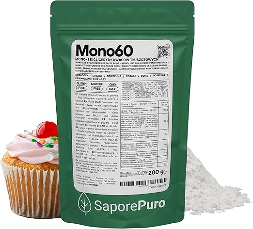 Описание продукта Порошкообразный пищевой эмульгатор (E471) – на растительной основе, легко дозируется и растворяется. Улучшает текстуру и стабильность мороженого, сорбетов, маргарина, кремов и кондитерских изделий, обеспечивая идеальную однородность и кремообразность. Высокая чистота – 60% активных монодиглицеридов – концентрированная формула обеспечивает профессиональные результаты даже в малых дозах. Улучшает стабильность эмульсии и придает кремам, мороженому и выпечке лучшую структуру и гладкость. Идеально подходит для мороженого и сорбетов ручной работы – облегчает нанесение, уменьшает образование кристаллов льда и обеспечивает гладкую, стабильную и кремообразную консистенцию даже после замораживания. Идеально подходит для маргарина, кремов и выпечки – улучшает пластичность маргарина, стабилизирует эмульсии и делает выпечку более пышной, мягкой и дольше сохраняет свежесть. Карамель и ириски – Снижает вязкость и кристаллизацию сахара, улучшает тягучесть, блеск и структуру, обеспечивая более однородный результат. ✅ Без глютена и на 100% растительного происхождения – Полностью не содержит глютена и ингредиентов животного происхождения. Идеально подходит как для кустарного, так и для профессионального использования в производстве мороженого, кондитерских изделий и продуктов питания. ⚖️ Рекомендуемая дозировка: Мороженое и сорбеты: 0,2 – 0,5% Маргарин и сливки: 0,3 – 1,0% Выпечка и кондитерские изделия: 0,3 – 1,2% Карамель и ириски: 0,2 – 0,4%