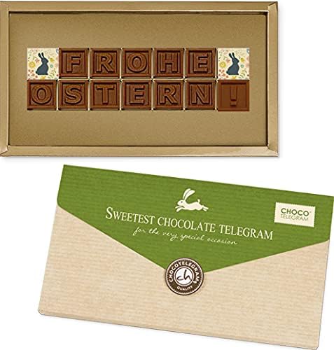Информация о товаре: Пасхальные поздравления в виде послания, составленного из 14 шоколадных камешков. Камешки изготовлены из цельного молочного и белого шоколада. Два белых шоколадных квадратика украшены изображением пасхального кролика. Упаковано в коробку-конверт с зеленым клапаном и изображением кролика. Вес нетто: 132 г. Размеры упаковки: примерно 25 x 14 x 2 см. В теплое время года мы добавляем к вашему заказу охлаждающую батарейку, чтобы гарантировать сохранность шоколада при доставке. Бесплатная доставка по Германии при заказе от 40 евро. Этот продукт не содержит алкоголя.
