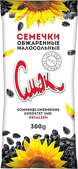 Информация о продукте: Семена подсолнечника в скорлупе, обжаренные и слегка подсоленные. Для этой закуски используются черные, очень маслянистые семена подсолнечника. Семена обжариваются до очень высокой степени прожарки, что делает их исключительно хрустящими. Этот «свежеобжаренный» вкус дополняется очень легким привкусом соли.