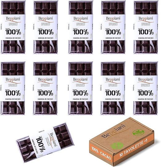 Шоколад Beppiani из 100% какао-массы, крафтовый шоколад, веганский, без сахара, богат антиоксидантами, для сбалансированного питания — набор, произведено в Италии (10 + 1 бесплатно, классический).