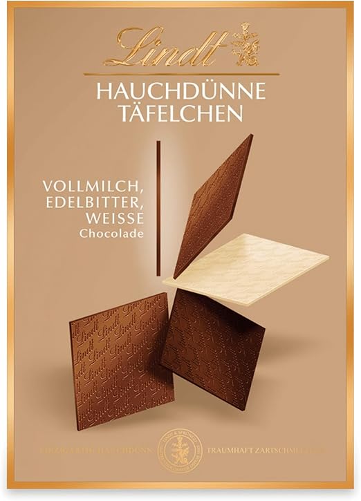 Информация о продукте. Изысканный выбор наших знаменитых сортов шоколада: очень тонкие плитки. Непревзойденное творение мастеров Lindt. Прекрасный подарок или для себя. Идеально подходит в качестве небольшого подарка, чтобы поделиться с друзьями, в качестве десерта, к чашечке кофе или бокалу вина. Изготовлено из лучших ингредиентов, включая какао-бобы из экологически чистых источников. Благодаря многолетнему опыту, мастера-шоколатье создают швейцарский шоколад до совершенства.