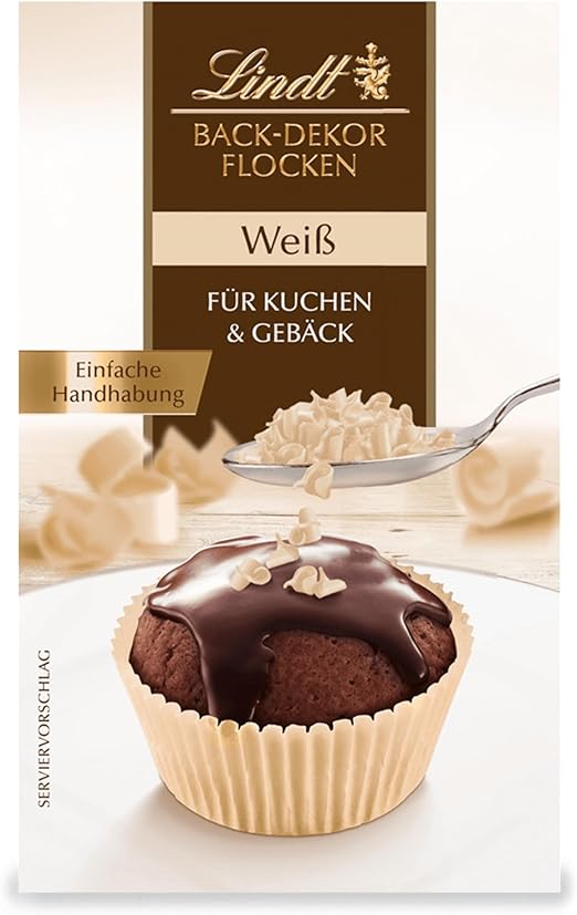 Lindt Płatki dekoracyjne do pieczenia białe 120 g dekoracja pieczenia delikatne płatki czekolady do dekorowania ciast i wypieków