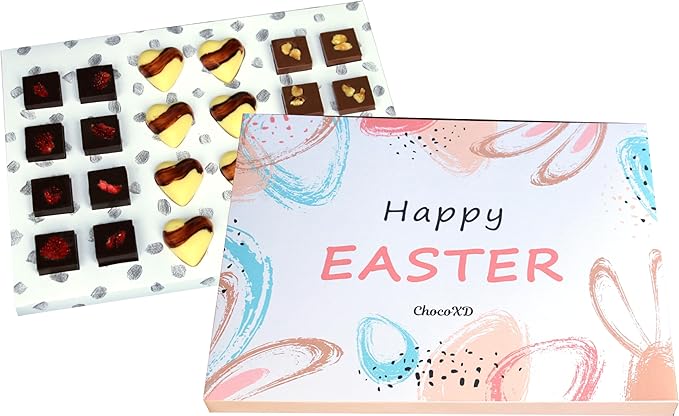 Информация о продукте: Пасхальный шоколад ручной работы, сертифицированный по стандартам Fairtrade. Изготовлен из 100% натуральных ингредиентов. Белый, молочный и темный шоколад с орехами и сухофруктами. Экологичная упаковка из перерабатываемых материалов. Идеальный подарок на Пасху.