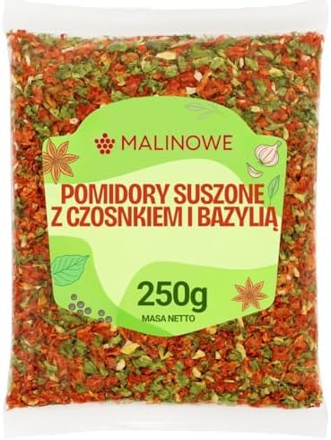 Описание продукта: Сушеные томаты с базиликом и чесноком — это сочетание сушеных томатов с базиликом и чесноком. Сушеные томаты обладают насыщенным вкусом и сладким ароматом, который усиливается добавлением сушеного базилика и чеснока. Это сочетание придает блюдам неповторимый вкус и аромат, идеально подходящий для средиземноморской кухни. Сушеные томаты с базиликом и чесноком можно добавлять в салаты, пасты, ризотто, пиццу и бутерброды. Это отличный ингредиент для приготовления домашних соусов, маринадов, тапенады и песто. Их также можно употреблять в качестве самостоятельной закуски. Сушеные томаты с базиликом и чесноком — это вкусное и ароматное дополнение к различным блюдам, придающее им глубину вкуса. Вес: 250 г