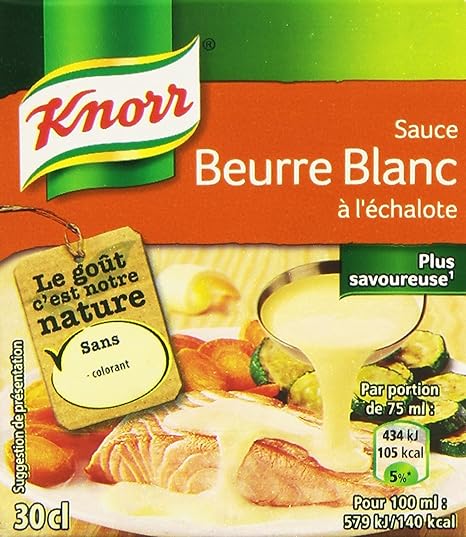 Описание продукта: Откройте для себя соус Knorr Butter Blanc – незаменимый продукт, который станет вашим маленьким секретом для еще более вкусных блюд. Растопите белый сливочный соус с луком-шалотом до восхитительной кремовой консистенции, которая порадует рыбу. Этот соус изготовлен без искусственных красителей и консервантов. Камень для соуса Knorr сертифицирован FSC, его картон получен из лесов, управляемых в соответствии с принципами устойчивого развития, и других контролируемых источников. В кастрюле нагревайте соус на медленном огне 2-3 минуты, периодически помешивая. Затем добавьте блюдо и наслаждайтесь. Также откройте для себя другие незаменимые жидкие соусы Knorr: перечный соус со свежими сливками, соус бешамель или грибной соус со свежими сливками.