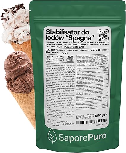 Нейтральный ингредиент для мороженого и сорбетов. Идеальная дозировка: 4 г/кг. 100% натуральные загустители. Предпочтительное применение: в горячем виде. С эмульгатором (полезно для жирных кремов и паст). › Подробнее о продукте