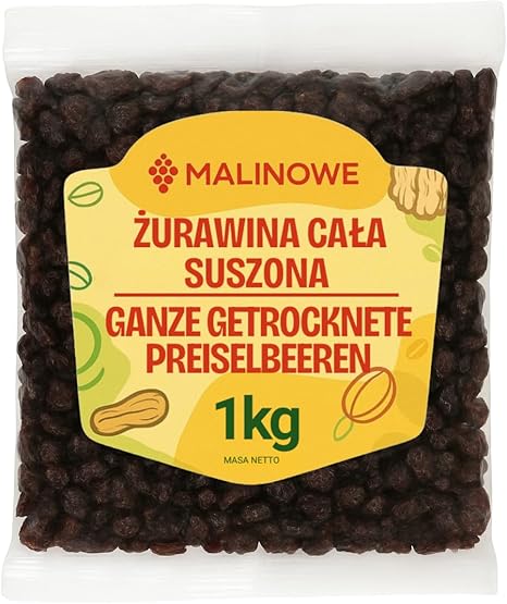 Информация о продукте Вес продукта: Упаковка содержит 1 кг сушеной цельной клюквы высочайшего качества Характерный вкус: Цельная клюква обладает выразительным вкусом, сочетающим кислые и сладкие ноты, обеспечивая освежающее вкусовое ощущение Интенсивный цвет: Цельная клюква имеет насыщенный красный цвет, обусловленный содержанием антоцианов, натуральных растительных пигментов, связанных с потенциальными полезными свойствами для здоровья Универсальное применение: Цельную клюкву можно употреблять в сыром виде, добавлять в салаты, смузи, жаркое, десерты, соусы, мюсли, йогурты и использовать в консервах Длительный срок хранения: Цельную клюкву можно хранить длительное время в сухом и прохладном месте Состав продукта: Продукт содержит сушеную цельную клюкву, сахар и подсолнечное масло, обеспечивая натуральные питательные вещества