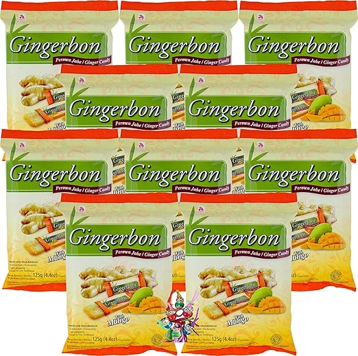 Информация о продукте. Упаковка из 10 штук – [10 x 125 г] имбирные конфеты со вкусом манго / имбирные конфеты со вкусом манго + маленький бесплатный талисман. Состав: сахар, тапиоковый крахмал, имбирь 7,5%, кокосовое масло (полностью гидрогенизированное), ароматизатор 0,2%, экстракт манго 0,1%. Информация об аллергенах: содержит кокосовое масло, произведенное на заводе по переработке арахиса. Хранить в прохладном и сухом месте. Содержимое: 125 г x 10 = 1250 г + маленький бесплатный талисман. Страна происхождения: Индонезия.