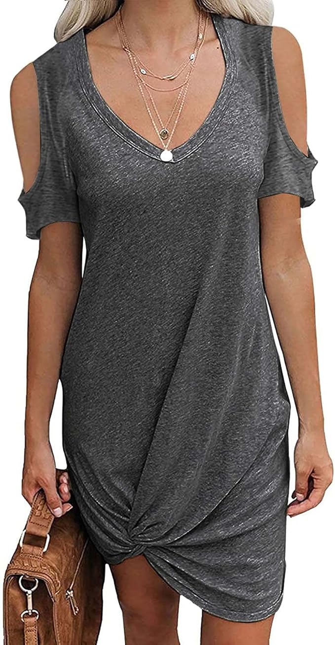 Wiosna i lato sweter z krótkim rękawem jednolity kolor okrągły dekolt bez ramiączek T-shirt sukienka damska
