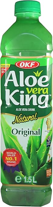 Информация о продукте yoaxia — [ 1,5 литра ] Напиток OKF Aloe Vera King с 30% алоэ / натуральный / алоэ / включая единовременный залог 0,25 евро. Состав: вода, сок алоэ 21%, фруктоза, гель алоэ вера 9%, регуляторы кислотности: E327; E330; E331, загуститель: E418, ароматизатор, сахар. Хорошо встряхнуть перед открытием. Хранить в холодильнике после использования и употребить сразу же. Объем: 1500 мл // Страна происхождения: Корея. Указанная здесь базовая цена включает единовременный залог в размере 0,25 евро за бутылку. За возврат пустых бутылок с напитком взимается залог. Вы можете отправить бутылки обратно нам или сдать их в пункт приема рядом с вами (например, в супермаркет с системой возврата залога за одноразовые ПЭТ-бутылки). › Подробнее о продукте