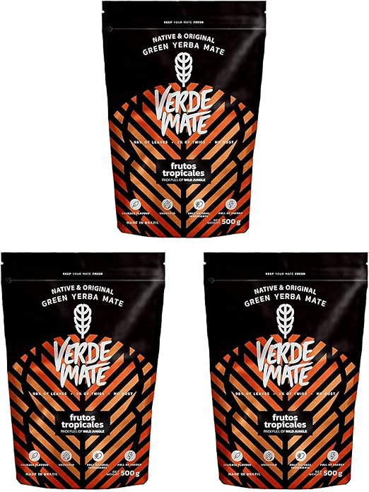 Verde Mate Green Frutos Tropicales 1,5 kg (3X500 g) | Pobudzająca yerba mate z owocami tropikalnymi 1500 g | Łagodny smak | Naturalna kofeina | Herbata Yerba Mate z Brazylii | 1500 g