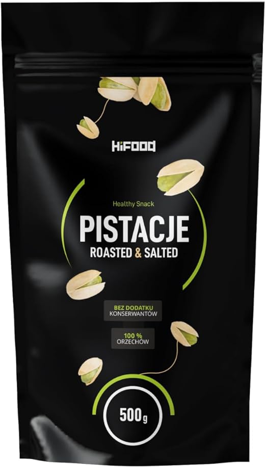 HiFood Pistacje Prażone Solone Całe 500 g Pistacje w Łupinach Naturalne Orzechy,Chrupiąca Przekąska Bez Konserwantów Źródło Białka i Błonnika Idealne do Przekąsek Sałatek i Deserów