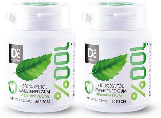 Жевательная резинка DC24 DAILY CARE со 100% ксилитом, без аспартама, без сахара, с натуральным мятным вкусом, без глютена, веганская, 60 штук (2 упаковки)